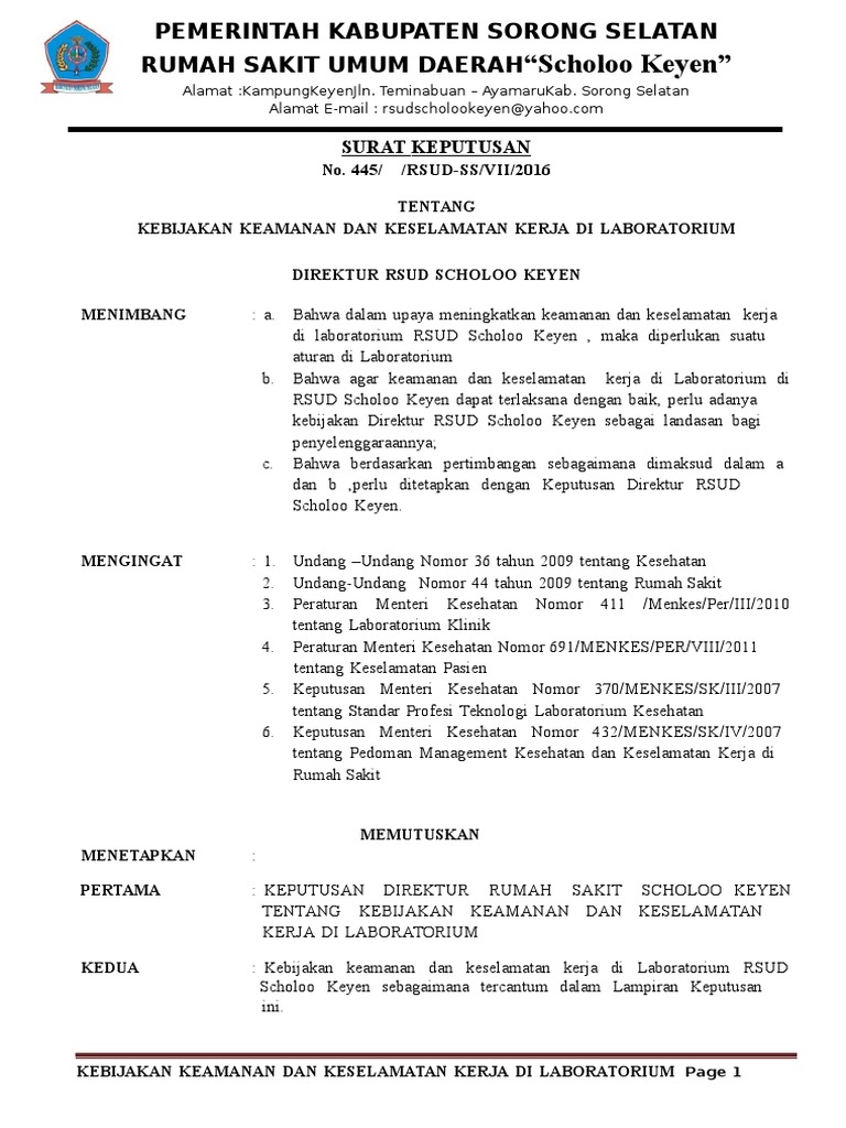 31 2012 Sk Kebijakan Keamanan Dan Keselamatan Kerja Di Lab Pdf